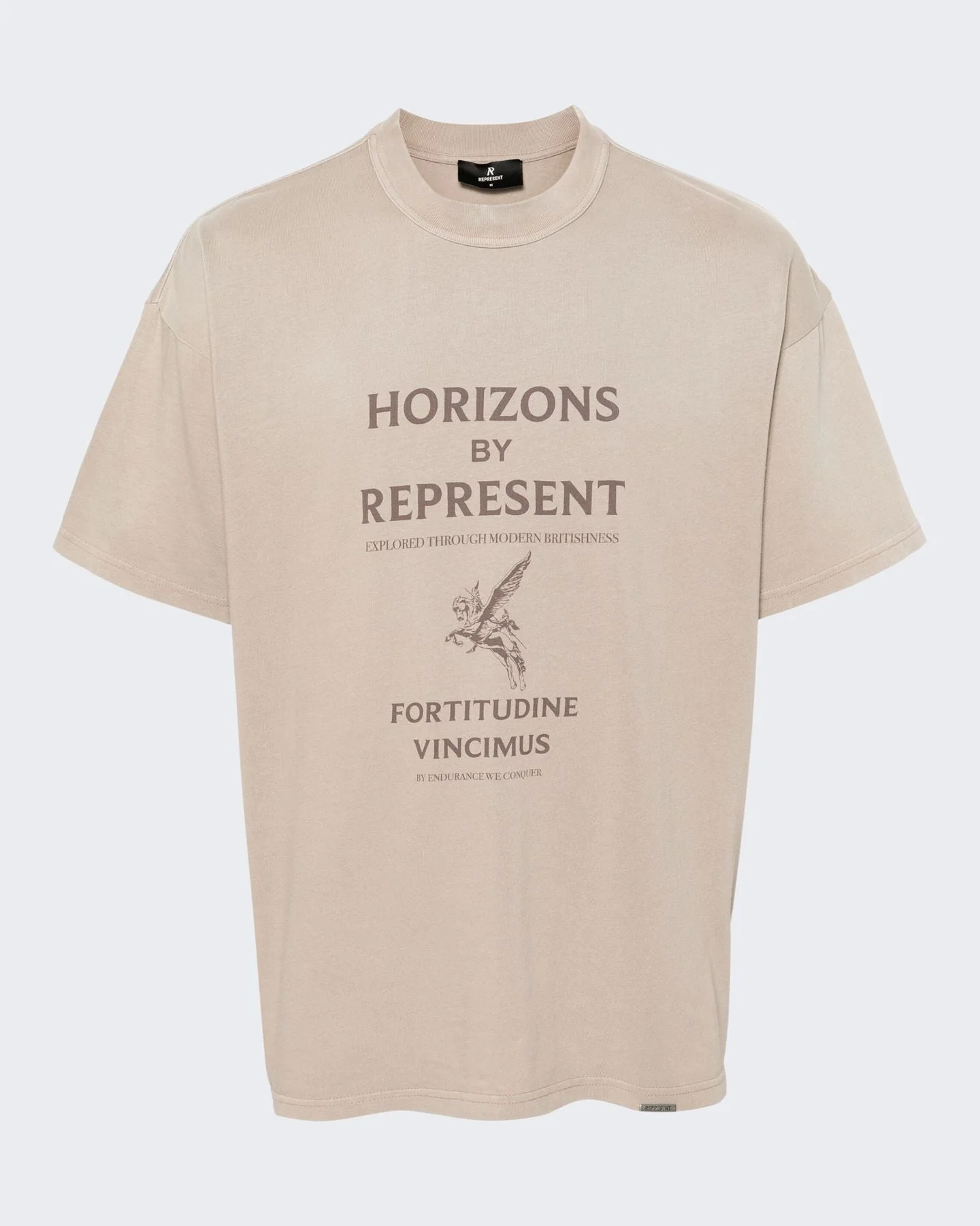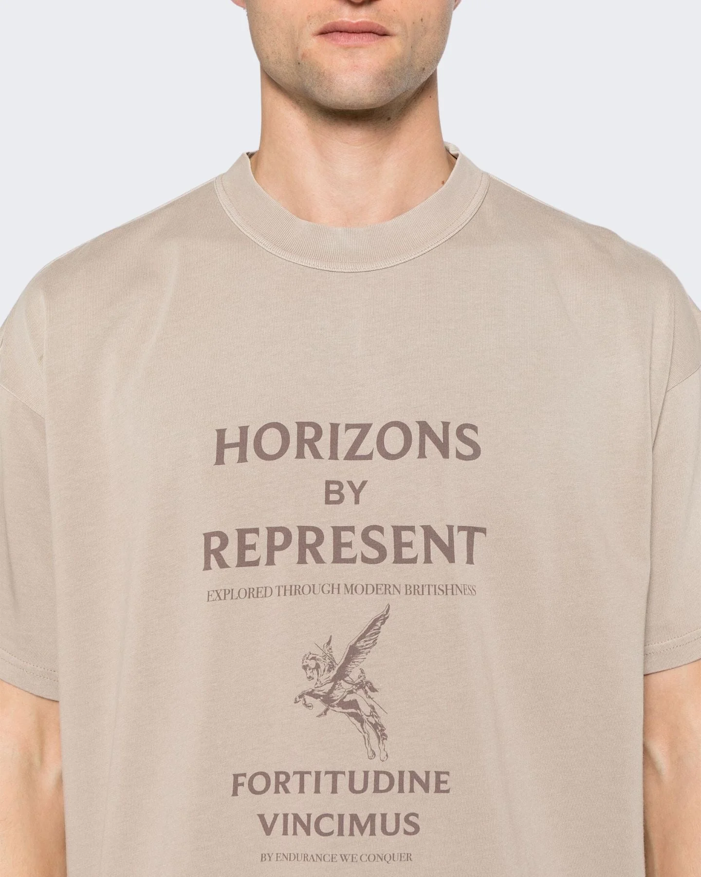 RepresentT-shirt Horizons Caratteristichetaupe/caffècotonejersey leggerostampa con slogan frontalegirocollomaniche corteorlo drittoComposizionecotone 100%ID: MLM413/431