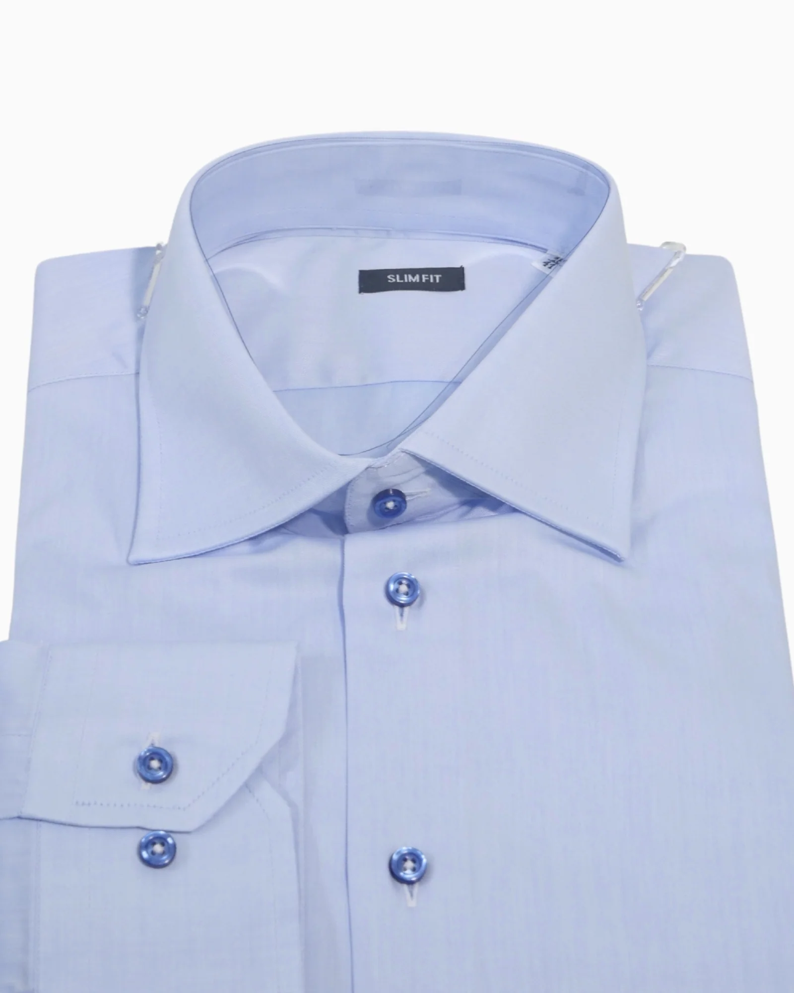 Camicia collo italiano confezionata in popeline stretch doppio ritorto per una vestibilitร slim.