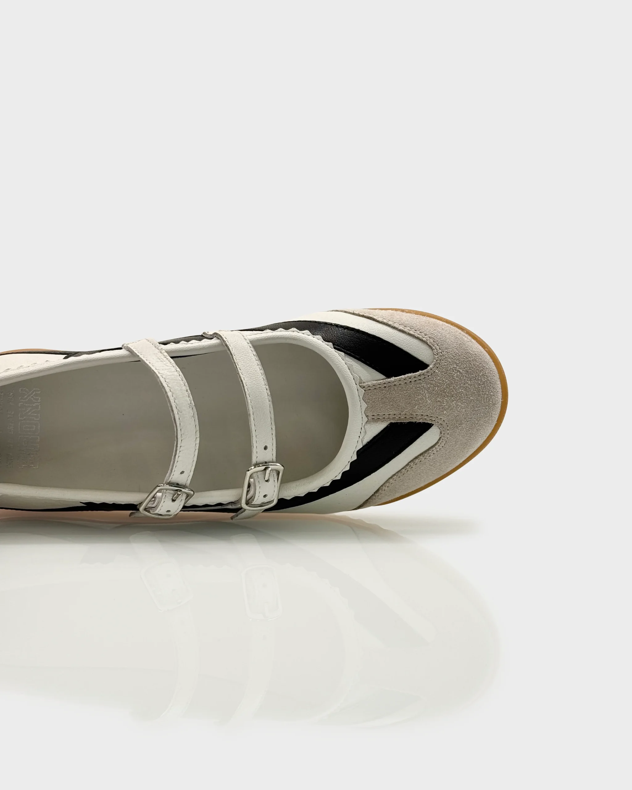 Sneaker ballerina donna dal design rรฉtro-sportivo, dinamica e versatile. Unisce la forma Mary Jane alla struttura di una vera sneaker, per uno stile urbano contemporaneo.