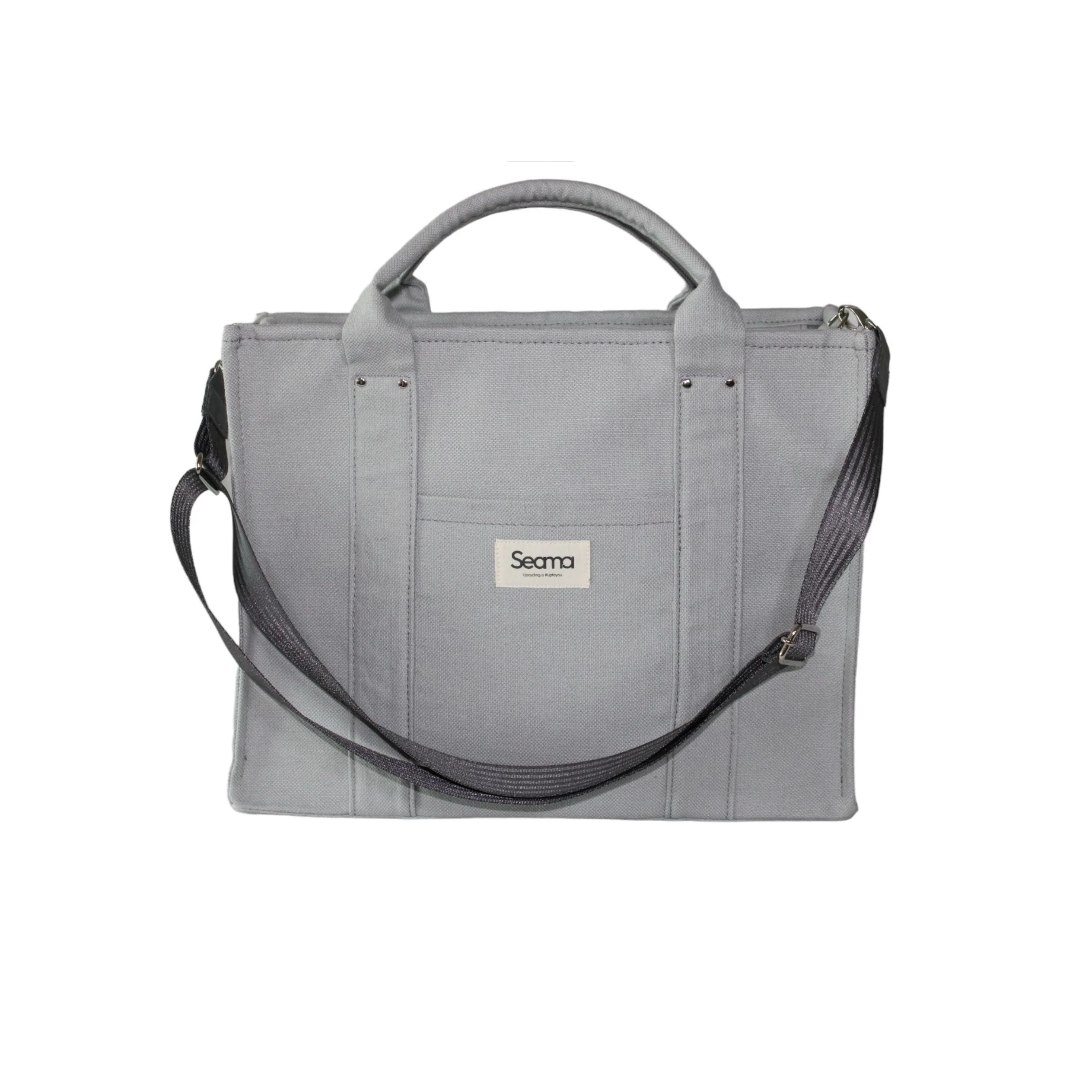 Capiente e resistente, la Tote Oslo grande può contenere anche il tuo laptop con un’eleganze contemporanea e raffinata. Può essere portata a mano o con la tracolla nera regolabile, la Tote Oslo grande ha una chiusura a zip, una tasca esterna per il cellulare e una interna per piccoli oggetti. E’ anche dotata di un porta bottiglia interno creato con un elastico grigio.