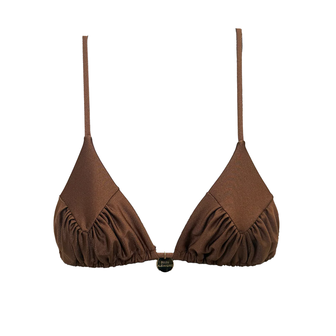 Il Triangolo Antea รจ ispirato alle eleganti vesti delle vestali greche. La maestria delle mani delle nostre sarte รจ nella complessitร della confezione che richiede un lungo processo per via delle tre parti di cui il triangolo รจ composto.