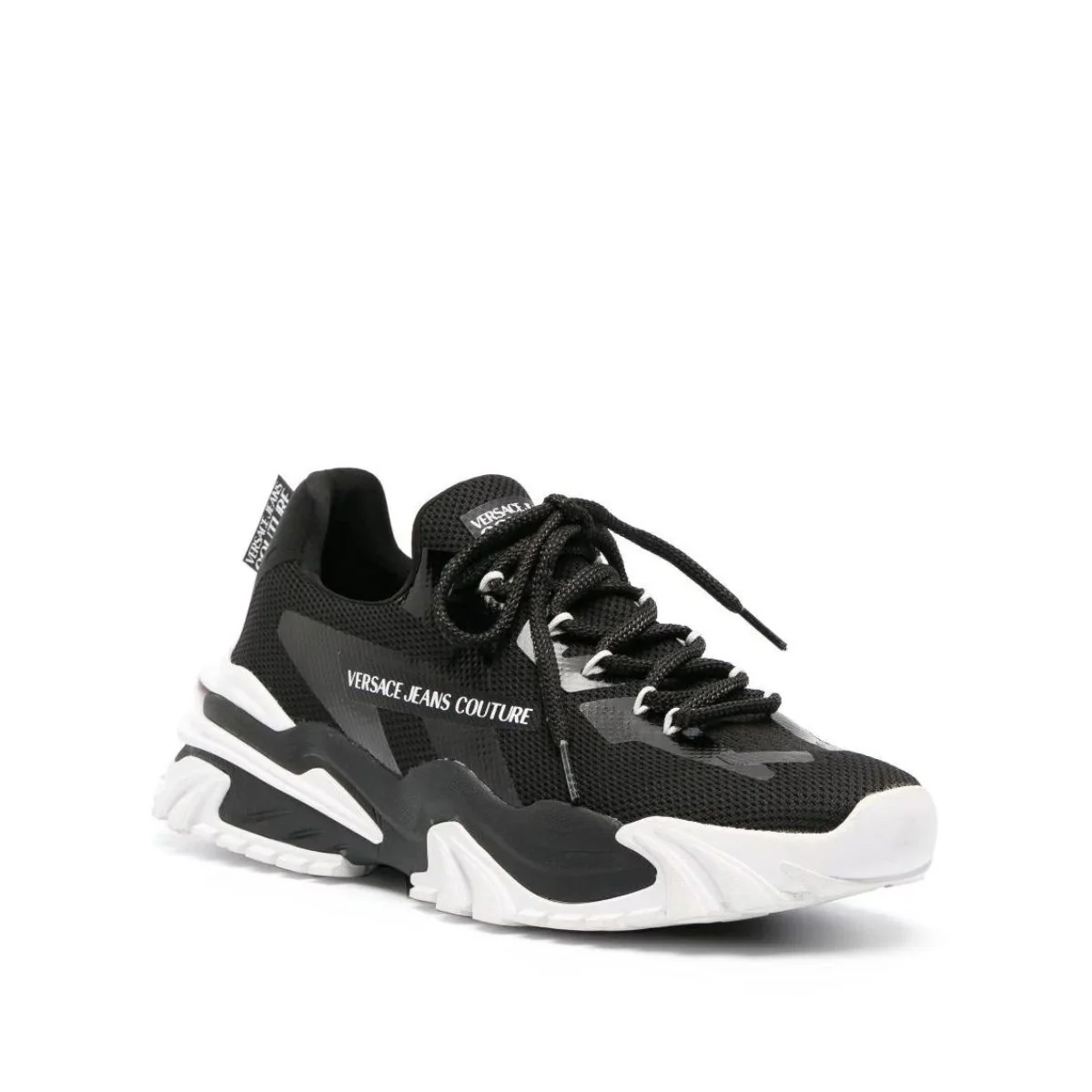 Versace Jeans CoutureSneakers con insertiCodice Articolo: 75YA3SI8 ZS888 Nero, design a inserti, mini targhetta con logo, stampa con logo laterale, linguetta con logo stampato, punta tonda, chiusura frontale con lacci, soletta con logo e suola chunky in gomma. ComposizioneSuola: Gomma 100% Esterno: Tessuto 100% Fodera: Tessuto 100% Misure prodotto per taglia (IT) 42Tacco 5 cmAltezza […]