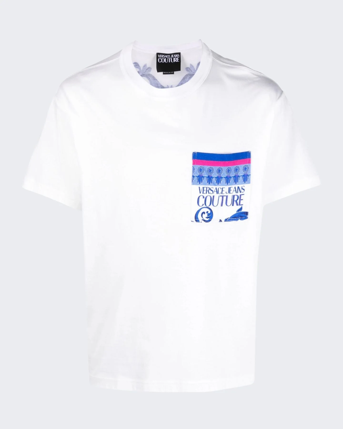 Versace Jeans CoutureT-shirt Barocco con stampa Lavorazione in jersey, caratteristica stampa Barocco, stampa con logo sul petto, stampa con logo sul retro, maniche corte, tasca applicata sul petto e orlo dritto. Origine: Italia Composizionecotone 100%