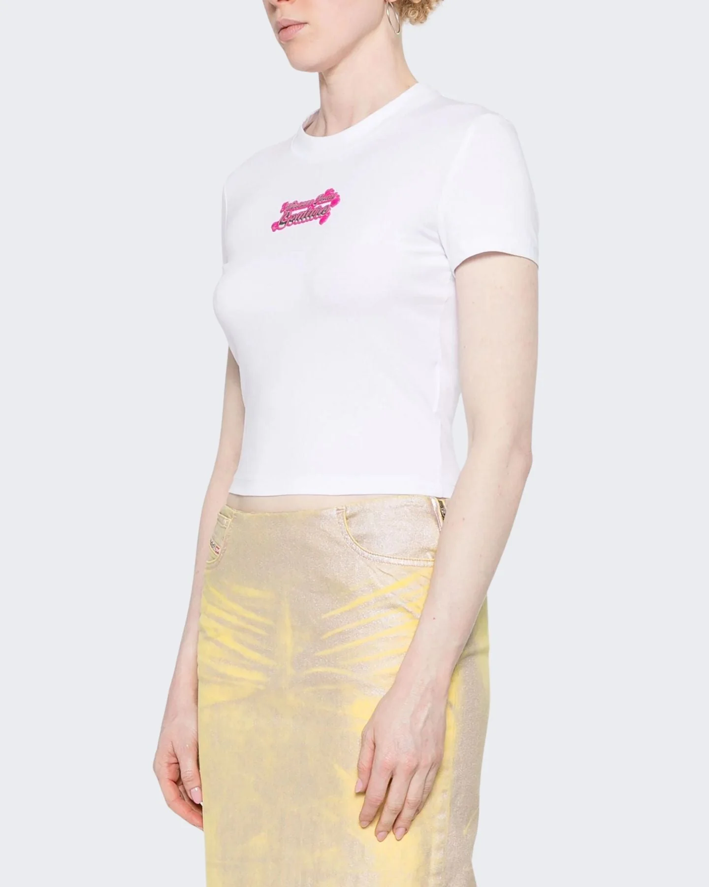 Versace Jeans CoutureT-shirt con applicazione crop Caratteristichenerocotone elasticizzatojersey morbidogirocollo a costemaniche cortelogo frontaledesign croporlo drittodesign pull onComposizionecotone 95%, elastam 5%
