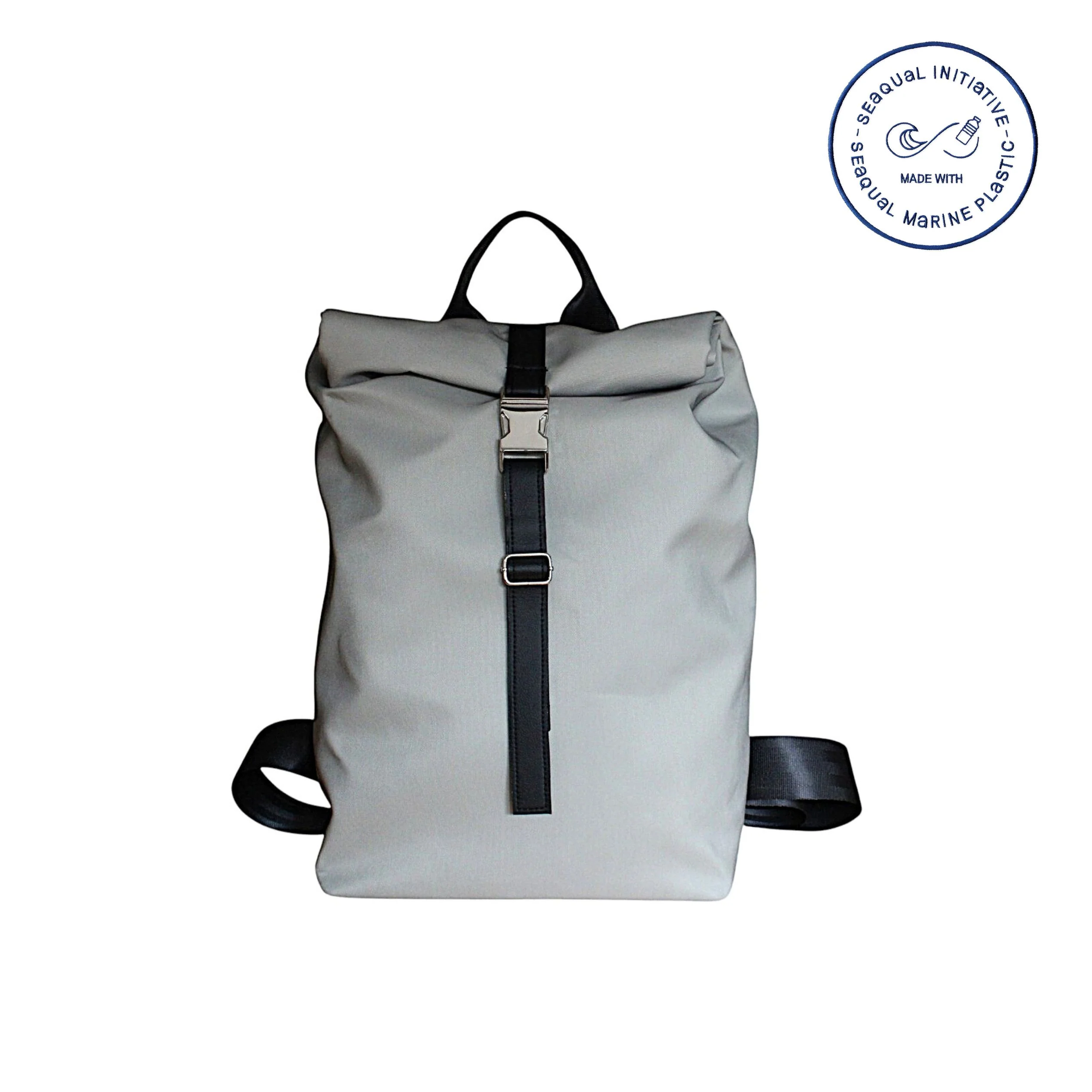 Lo zaino Eco è realizzato in 100% poliestere riciclato certificato, proveniente da SEAQUAL® MARINE PLASTIC. Questo tessuto contiene circa il 10% di plastica marina recuperata e il 90% di PET post-consumo proveniente dalla terraferma.