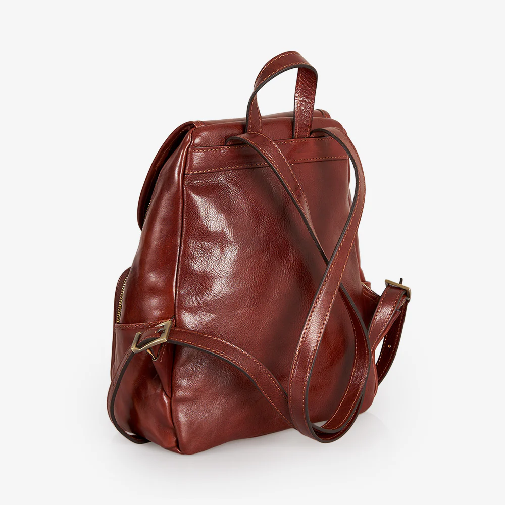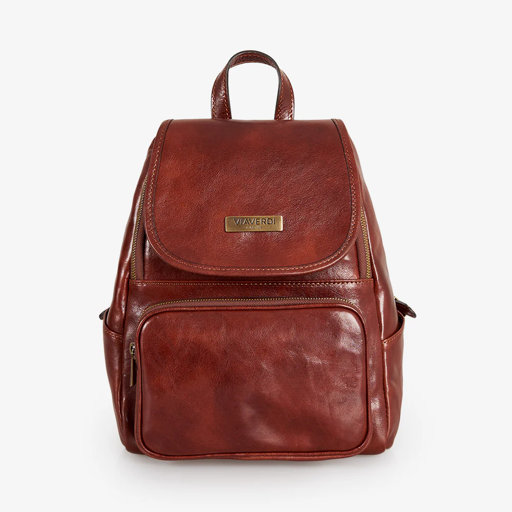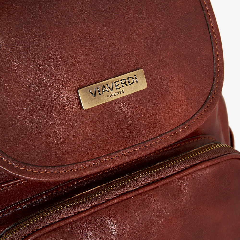 Zaino ViaVerdi in pelle marrone 100% Made in Italy realizzato artigianalmente dai nostri maestri pellettieri in Toscana.