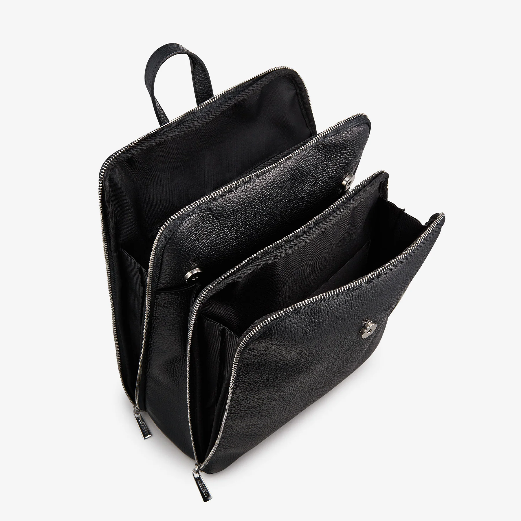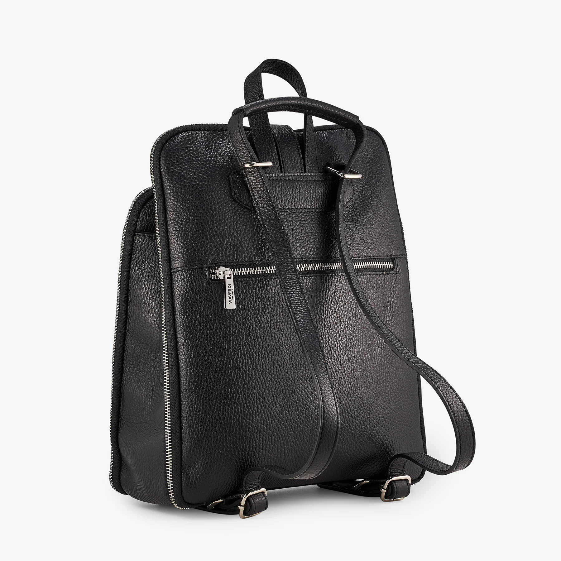 Zaino ViaVerdi in pelle nera martellata 100% Made in Italy realizzato artigianalmente dai nostri maestri pellettieri in Toscana.