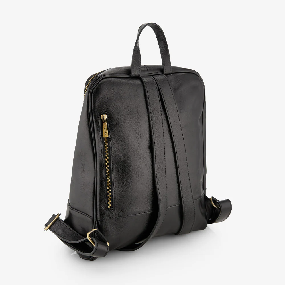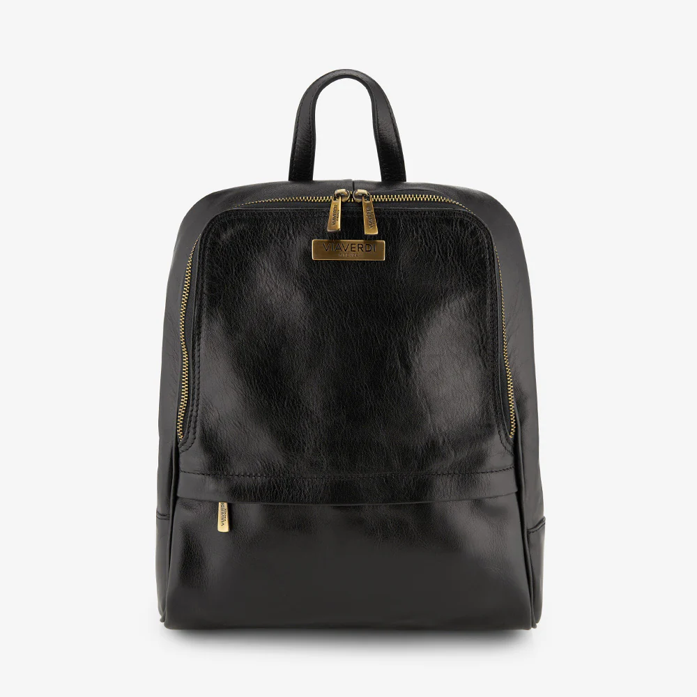 Zaino ViaVerdi in pelle nera 100% Made in Italy realizzato artigianalmente dai nostri maestri pellettieri in Toscana.