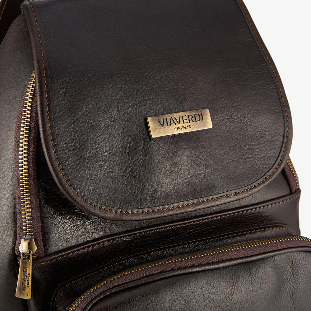 Zaino ViaVerdi in pelle color testa di moro 100% Made in Italy realizzato artigianalmente dai nostri maestri pellettieri in Toscana.